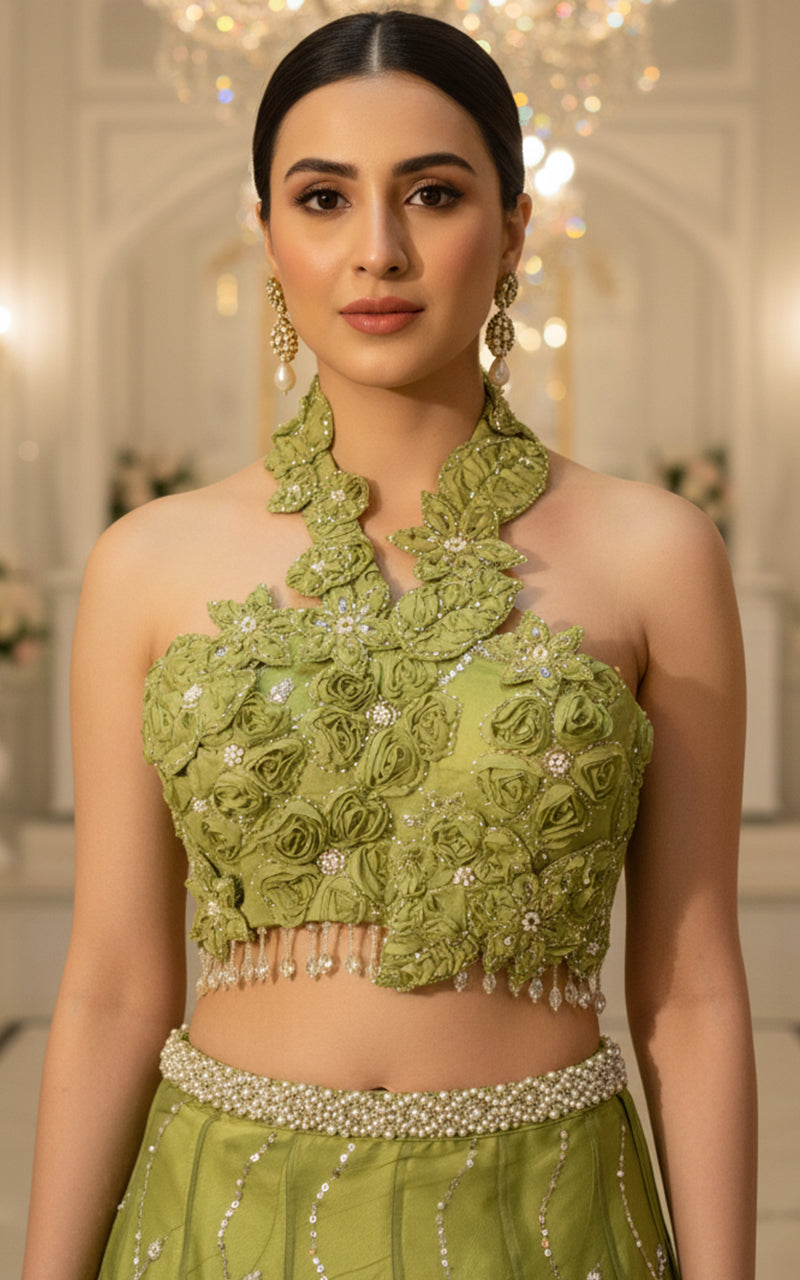 Embroidered Blouse With Lehenga