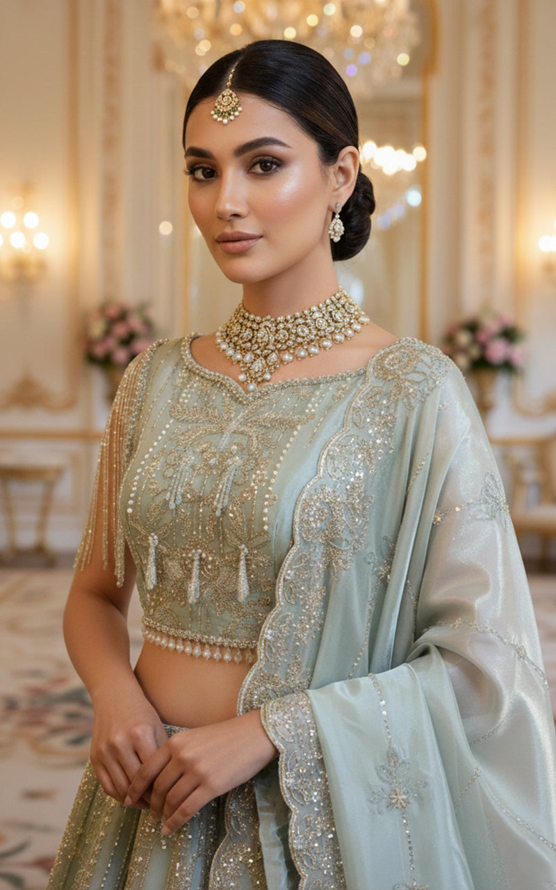 Embroidered Blouse With Lehenga And Dupatta