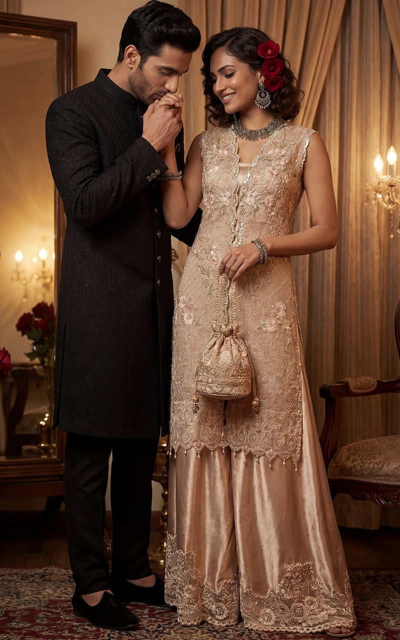 Standard Production lead time is 15–20 working days for Formal-wear and 8–10 working days for Ready-to-wear after order receipt. Please note that if we do not have complete information regarding the garment or design in re-production, the timeline will exceed accordingly.
